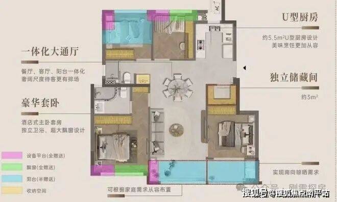 从户型数据来看,公摊16%,赠送14平,得房率97%。