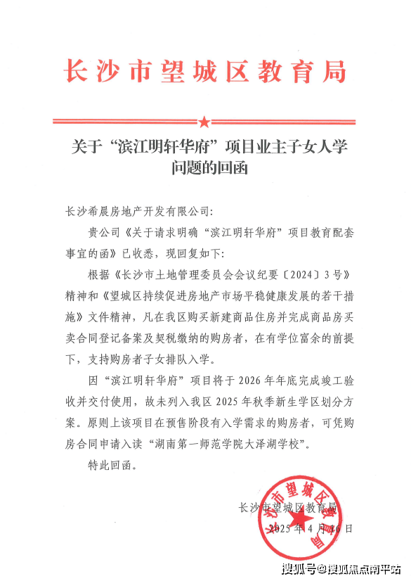 教育已有红头文件明确,希望绿城·江屿湖(备案名:滨江明轩华府)的业主子女可凭购房合同入读湖南第一师范学院大泽湖学校,无需派位,确定性摆在眼前!