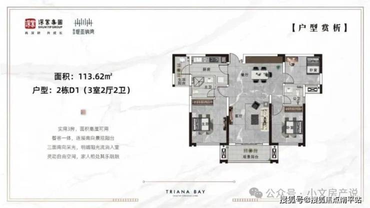 113㎡三房:13.1米南向面宽,稀缺小面积段中的“通透王者”;