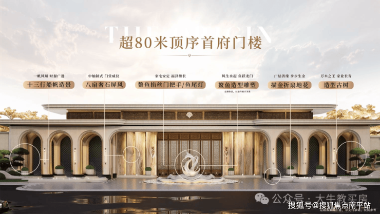 横跨80米、纵高13米的上亿奢宅大门营造超尺度视觉震撼,中西兼容的门第仪制,彰显对百年首府花园的致敬与回归,同时给予业主直观的体量感、尊崇感与文化感。
