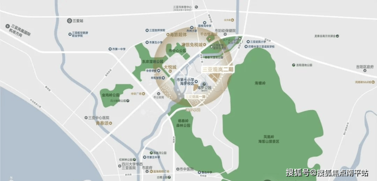 1.5公里生活配套圈:三亚妇幼保健院、星级酒店、文化剧场等。