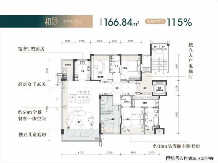 【四房两厅三卫】建筑面积约:167㎡实际得房率115%;实得面积约:192㎡,相当于旧规226㎡!(旧规户型按85%得房率计算,仅供参考)