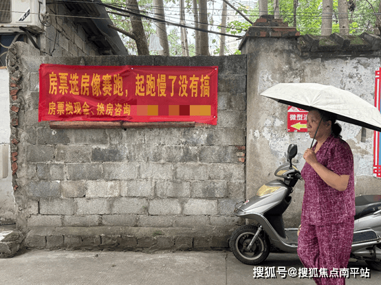 柳北区河北新村,市民路过一幅房票标语。今报记者颜篁摄