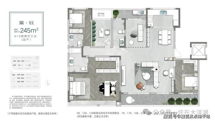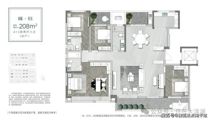 洋房(6-8层,主力)- 208㎡:4房3卫,南北通透、双套间
