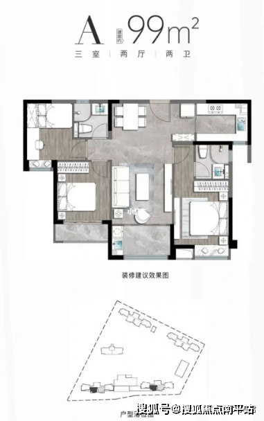 6、户型: 99㎡三房,这个户型整体没啥毛病,做到了最近开发商一直在宣传的“双阳台”, 如果价格合理应该是比较抢手,毕竟拉低了岛内的新房门槛,既能收一波岛内置换型客户也能吸附一波岛外大户型改善客户,在同板块3房的二手房竞争中也比较能打。