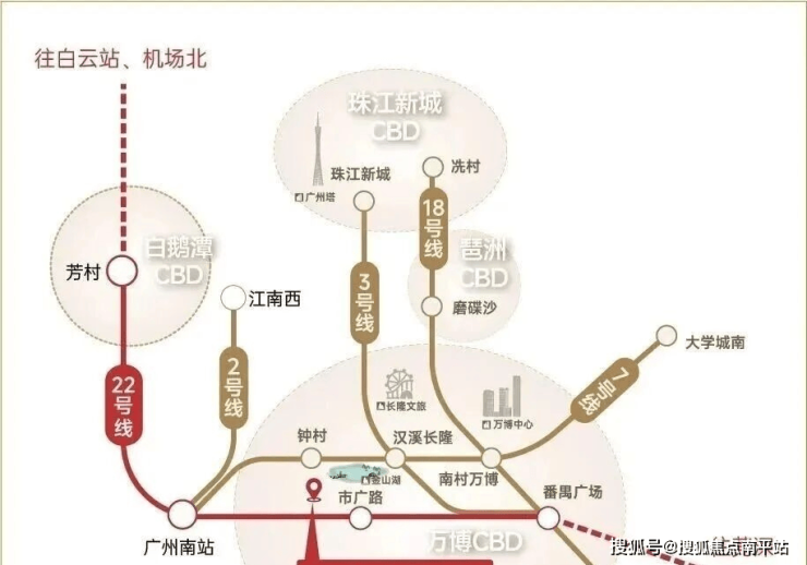 其中,22号线,时速高达160公里,能通达广州南站、白鹅潭商圈、白云机场、番禺广场等核心区域,且能一站换乘18号线。