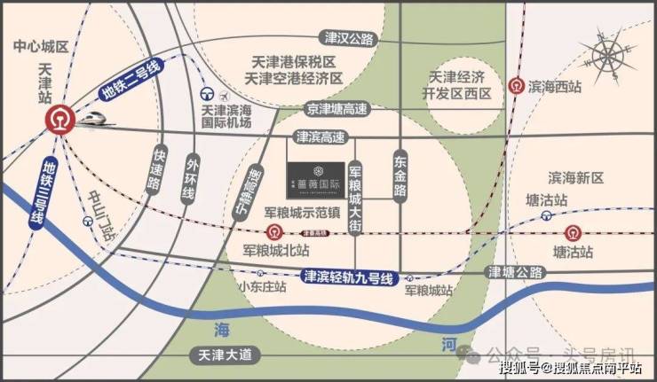 津滨轻轨9号线军粮城站,距项目2.5公里