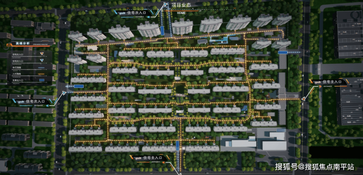 社区有两个主要入口,南门和东门,另外北侧和西侧都有次要出入口。