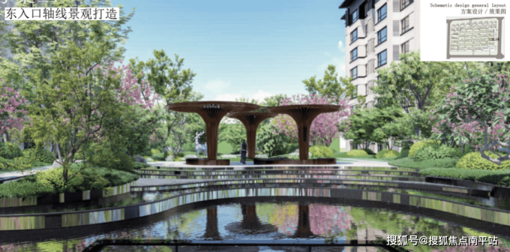 东入口景观也是水景加休闲厅(效果图仅为示意)
