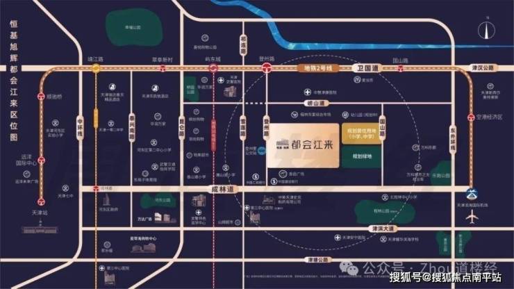 1️⃣距离天津站仅9km,半小时通达全城核心区!环内价格洼地!2020年底天津“十四五”规划确定,主城向东发展,旭辉再次精准拿地,助力板块腾飞!