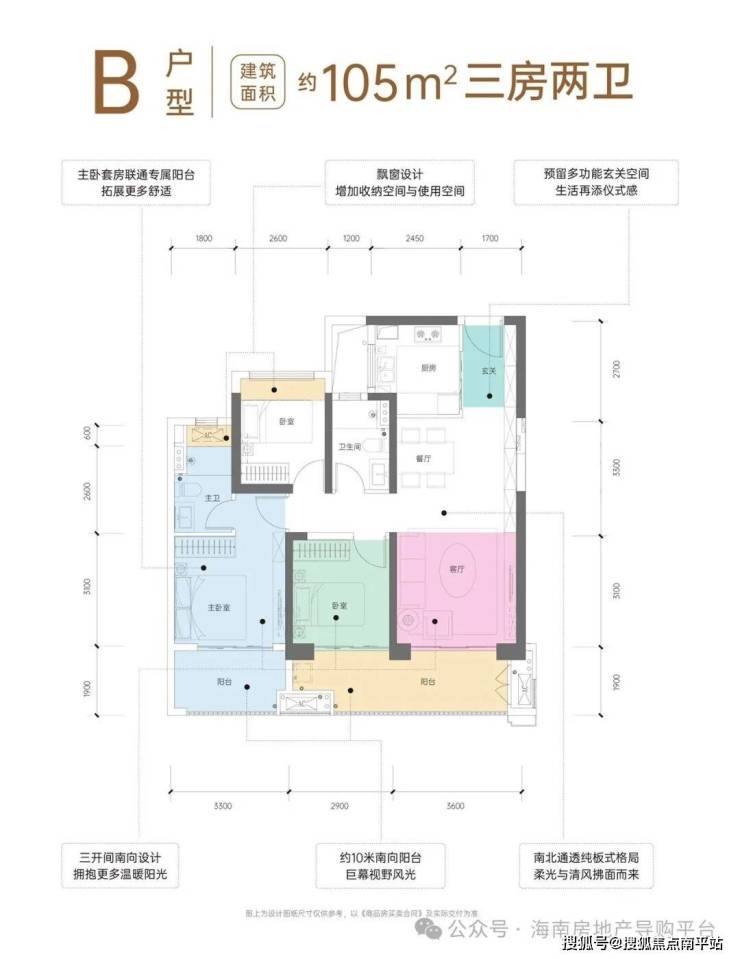 阔景阳台、多飘窗设计,部分户型带多功能阳台;板式方正通透结构,部分户型可达约90%使用率。