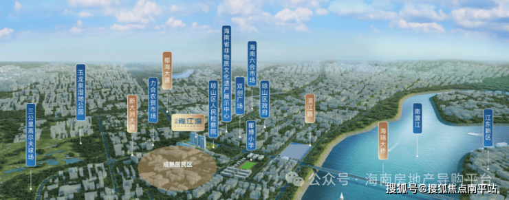 滨江新城规划东至南渡江,西至东线高速公路,北至琼州大桥,南至三公里高尔夫球场附近,规划范围面积约21723公顷,规划约15分钟便民生活圈,规划居住人口规模约27万人,为海口新打造城市副中心。