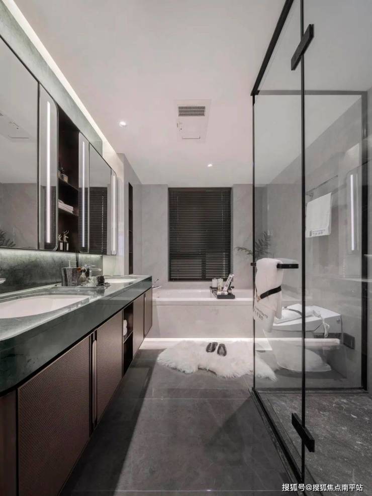 套房主卧,独卫空间足有约9平,双台盆与浴缸配置,还有大品牌马桶,与5万+的武汉瑞府等并无差别。