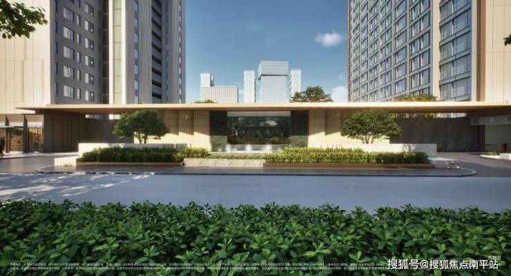 从规划资料来看,社区大门将会打造为纯粹的酒店式高定礼宾入口。大门整体长约55米、高约5.8米,耗资必定不菲,就尺寸来看相当有排面了。结合社区大堂打造环岛式酒店落客区,归家礼仪感做得很足。