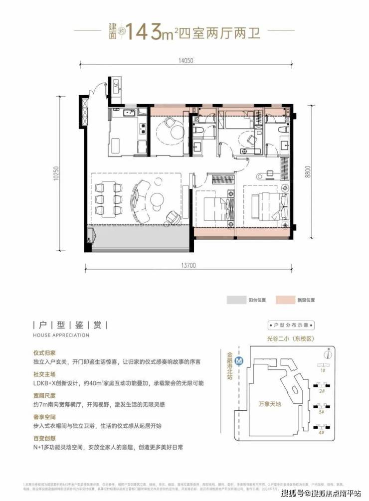 光谷润府:纯新盘,外展点已开放,即将首开,户型图已发布,为建面约123、143、175㎡精装修三房、四房。