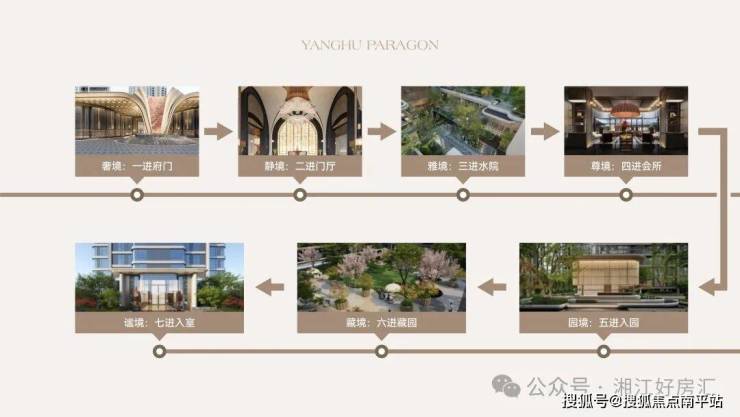 嘉信央玺打造 “七进归家仪制”,采用 “一轴双厅五园” 的整体园林布局。