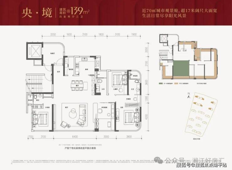 约17米大面宽,约6.4米开间大客厅,约3.8米开间的超大主卧套房,空间尺度碾压同级, 甚至相当于洋湖某盘约208㎡的低层洋房的面宽,简直夸张!