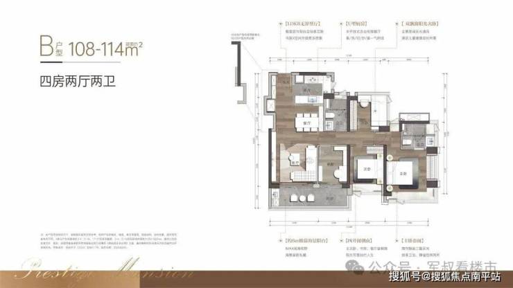 建面约109㎡的4房2厅2卫:大横厅设计,空间实用性更高,该户型使用率达到了98%。货量不多,稀缺性不言而喻。