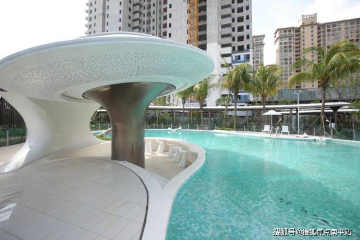 它以更贴近自然的曲线轮廓柔化边界,将水面与周围的椰林绿意自然衔接,遮顶结构犹如白色贝壳漂浮于水畔,每一帧都是热带风情的氛围定格。