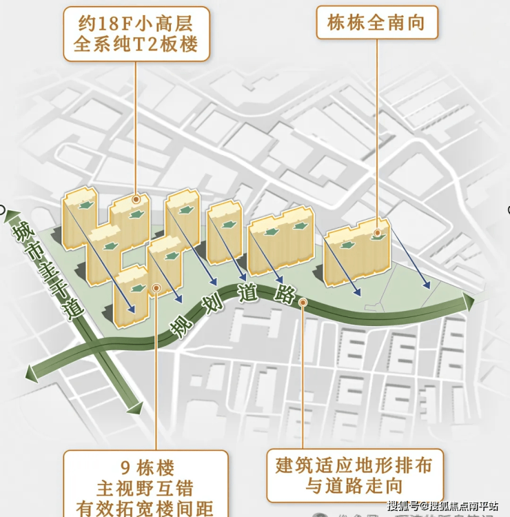 🔹17-19层纯板式小高层,户户南北通透,宽阔楼间距