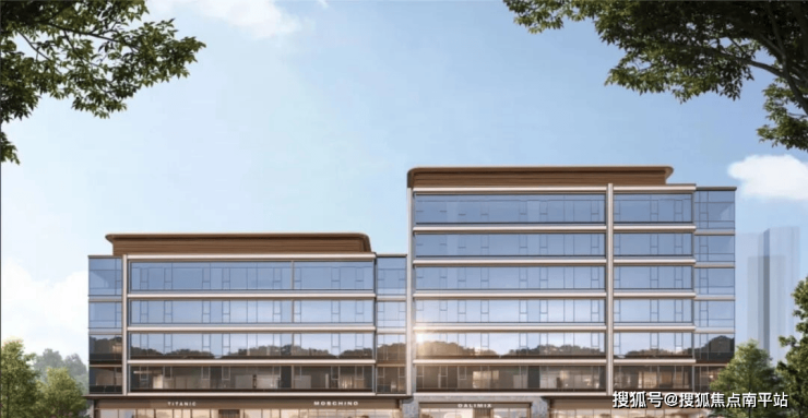 【外立面】:大面积玻璃幕墙+局部铝板线条