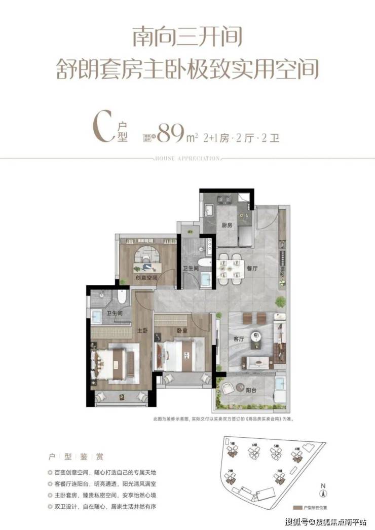 而建面约 89-136㎡的户型,则把“实用主义”和“情感需求”结合得恰到好处。N+1的灵动空间,为家庭未来十年的成长留白了可能性;约3米的层高和南北通透的全明格局,让室内的敞亮感扑面而来;那些阔景阳台和飘窗,不再是冰冷的建筑构件,而是邀请江风、阳光和绿意入室的“生活取景框”。