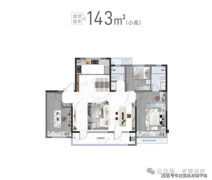 A8-4#,面积143㎡,1T2,2单元(143户型可改4室)16%公摊