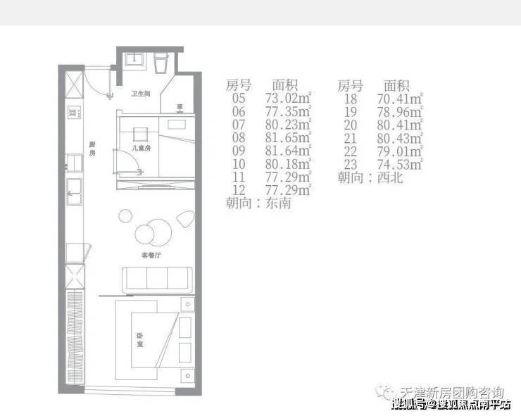 两居室:70.42㎡-81.65㎡;
