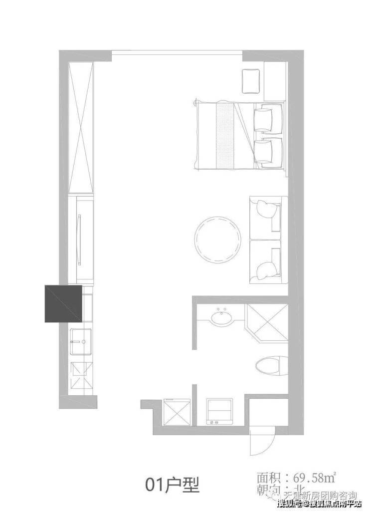 一居室:63.58㎡-69.58㎡;