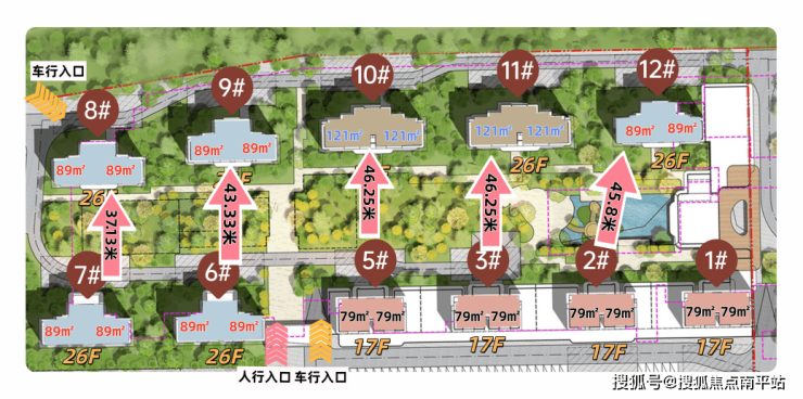 2、2梯2户纯板楼,户型全部新规,套内使用率达113-123%,建面79、89平户型占大部分,总价门槛降低;