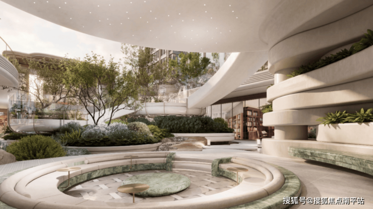 小区内部会所、泳池、健身房一应俱全,景观以 “大树年轮” 为灵感做了 “一轴、一谷、四境”,还有全龄化的社区空间,带孩子的家庭平时散步玩耍都有地方去。