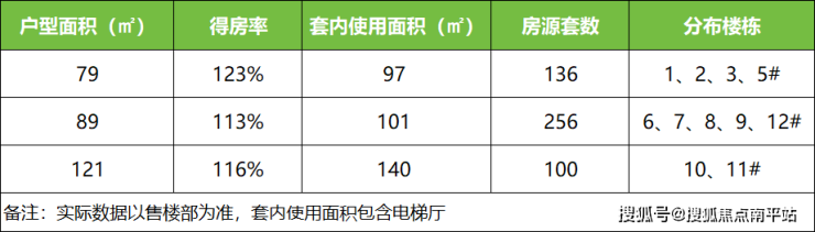 户型选择注意:如果只是为了上学,买建面79平户型即可,得房率最高,套内使用面积比89平户型只少了2平米,性价比最高;如果是改善家庭,需要三代同堂,建议直接上121平的户型,舒适度更高。