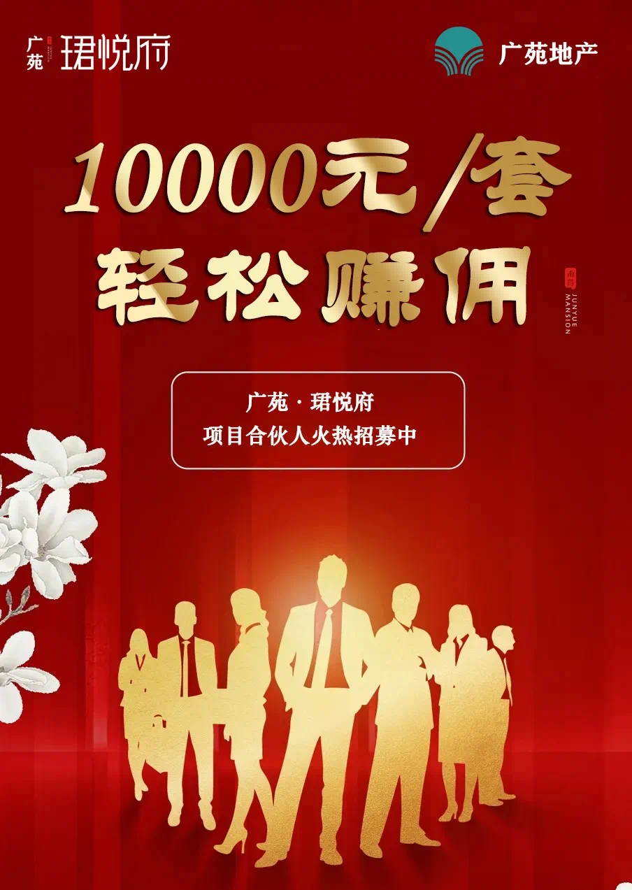 成为项目合伙人:须到案场签订项目合伙人申请协议,方可成为广苑·珺悦府项目合伙人,享受合伙人权利及相关奖励政策。