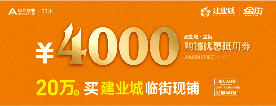 老业主购买建业城金街一期A栋\B栋二层商铺即可获得4000元购铺优惠