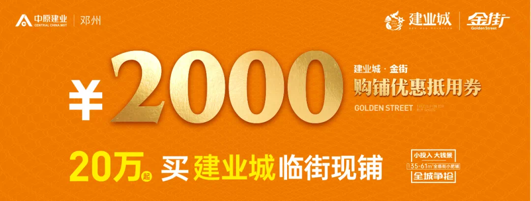 老业主购买建业城金街一期A栋\B栋三层商铺即可获得2000元购铺优惠