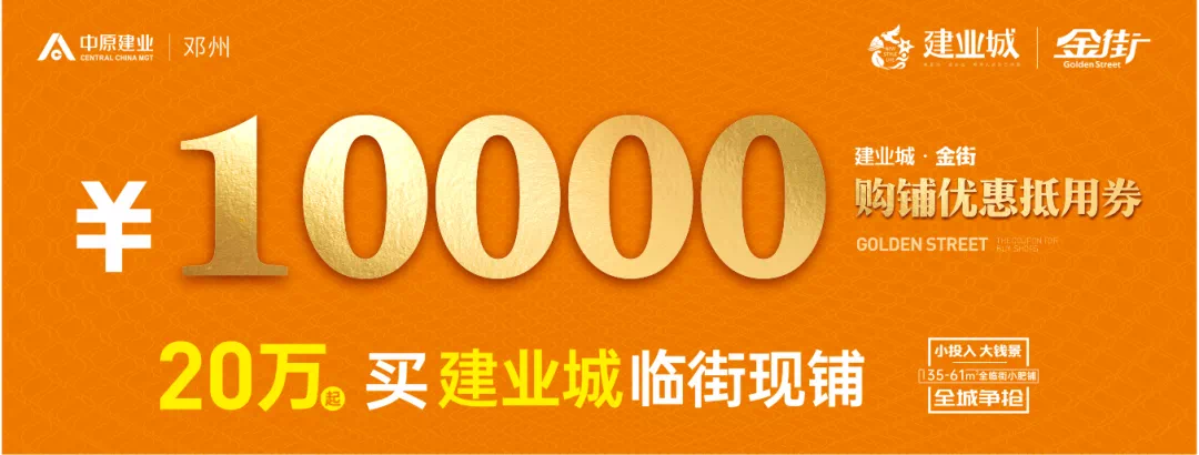 老业主购买建业城金街一期A栋\B栋一层商铺即可获得10000元购铺优惠。