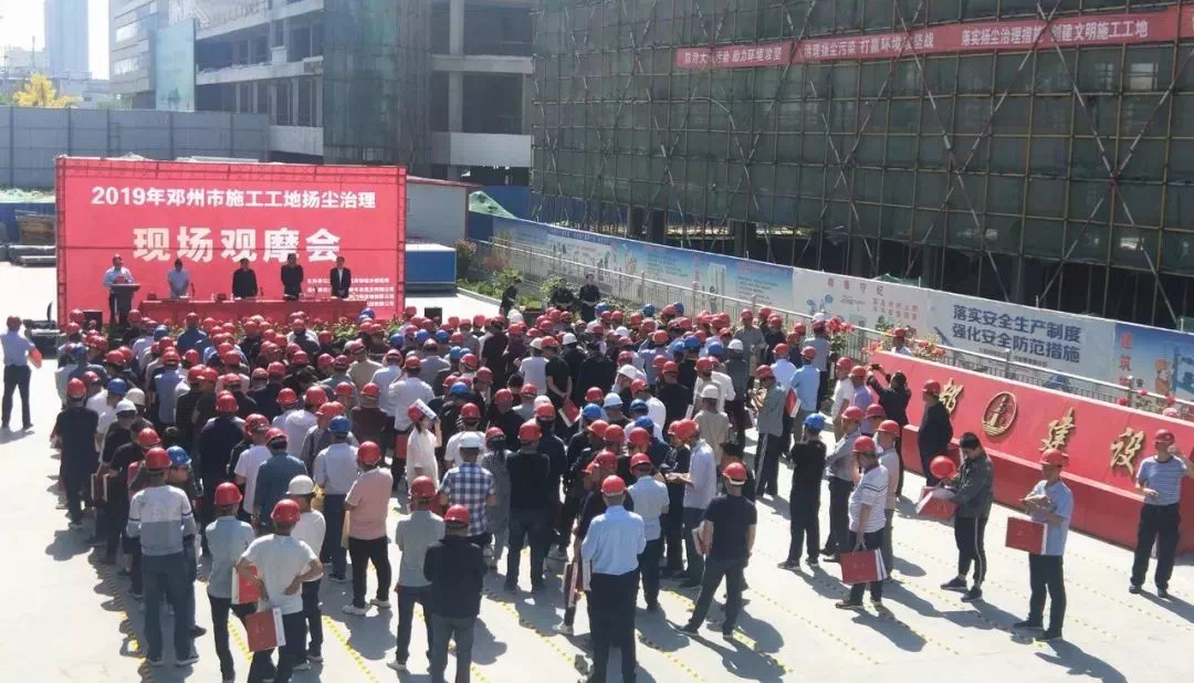 与会人员还参观了项目部的具体扬尘防治现场,观摩了塔吊、围挡、道路喷淋系统,扬尘噪音动态检测系统,洗地机、电动洒水车等移动降尘装置、土方堆积区域进行裸土覆盖。同时,观摩过程中进行全方位降尘演示,在演示后,领导对防尘降尘设施措施给予肯定,表示要将这些措施常态化,才能真正有效对扬尘污染进行管控。