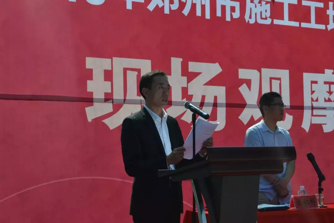 邓州住建局杜新占局长、程荣虎副局长、张仁科主任先后发言、对项目的各项工作表示了充分肯定。并强调了此次在建业广场项目举办的观摩会的重要意义,通过举办此次现场观摩,借鉴、推广好的经验和做法。进一步提升我市建筑工程质量和安全水平、确保扬尘治理工作落实到位,并感谢建业广场项目为观摩会所做的筹备工作。