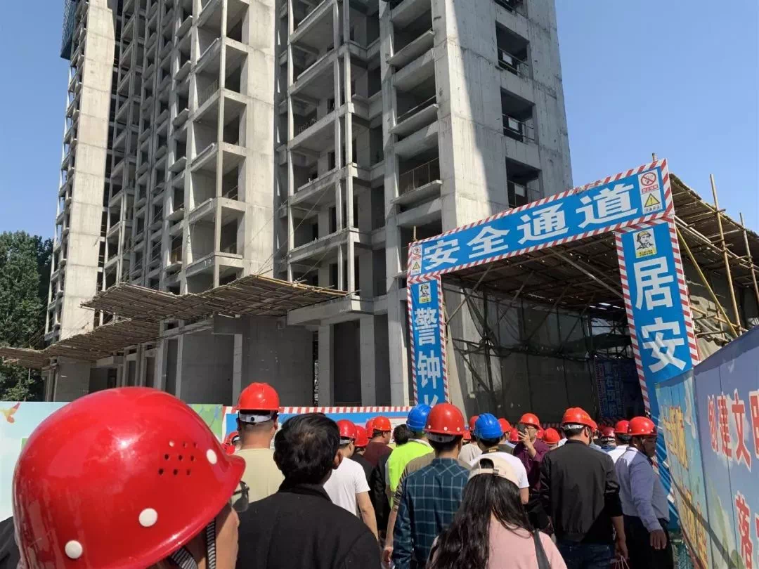 上午九点三十分,观摩交流活动正式开始,参会人员依次对建业广场项目现场的施工展示区、施工材料展示区、主体混凝土构建成型模块进行观摩交流,学习先进的工作措施和系统的管理经验。