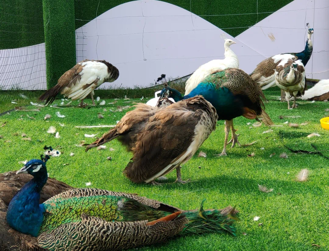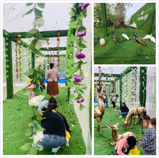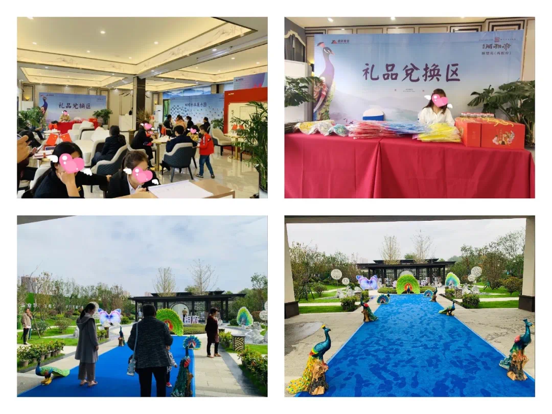 用两个字形容就是“震撼”被称为“百鸟之王”的孔雀开屏即代表着“富贵、吉利” 活动现场漫蝶飞舞,金尾屏风自开放当日就吸引不少客户驻留打卡以示留念