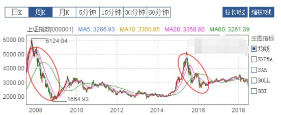 每次股市下跌,都将引来楼市的疯长。我们先看2008至2018年大盘指数,记住两个下跌的节点,2008年和2015年,两次大盘都跌得有些凄惨。