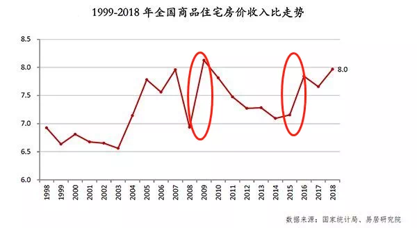 再看2008-2018年全国楼市成交均价,两个较大上扬转折点就出现在2009年和2015年。