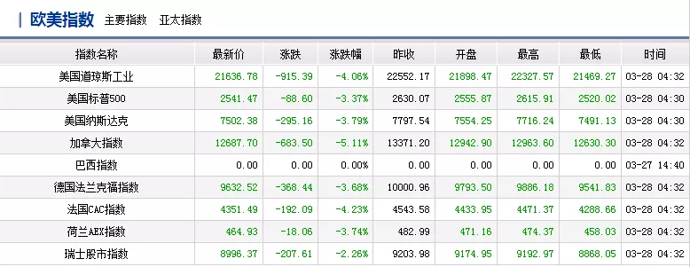 中国股市整体跌幅在10%左右;欧美股市整体跌幅在40%左右。