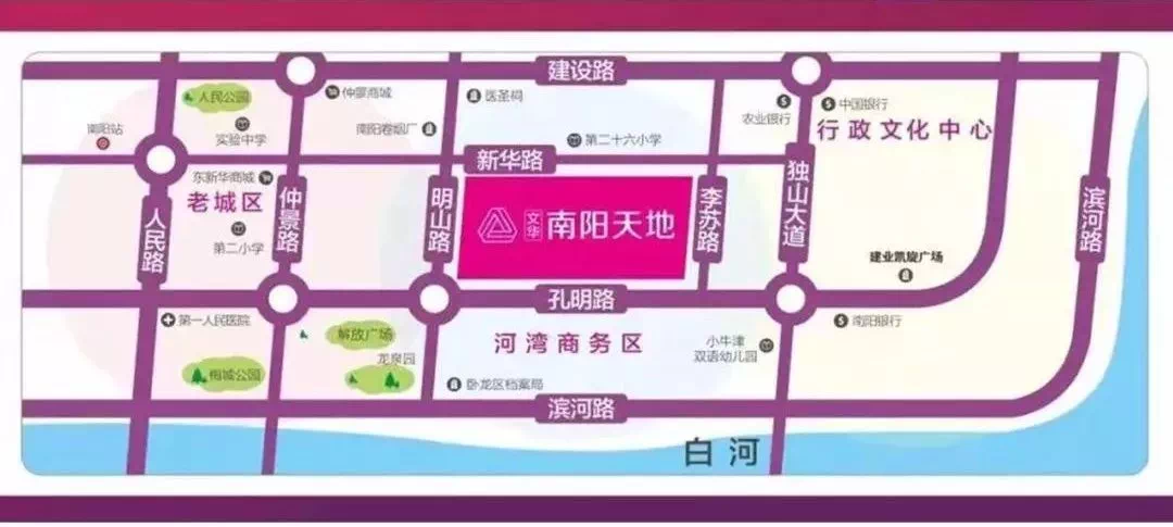 新华路、独山大道、孔明路、仲景路四条城市主干道围合左右未来流动人口聚集之地商业繁华聚集地