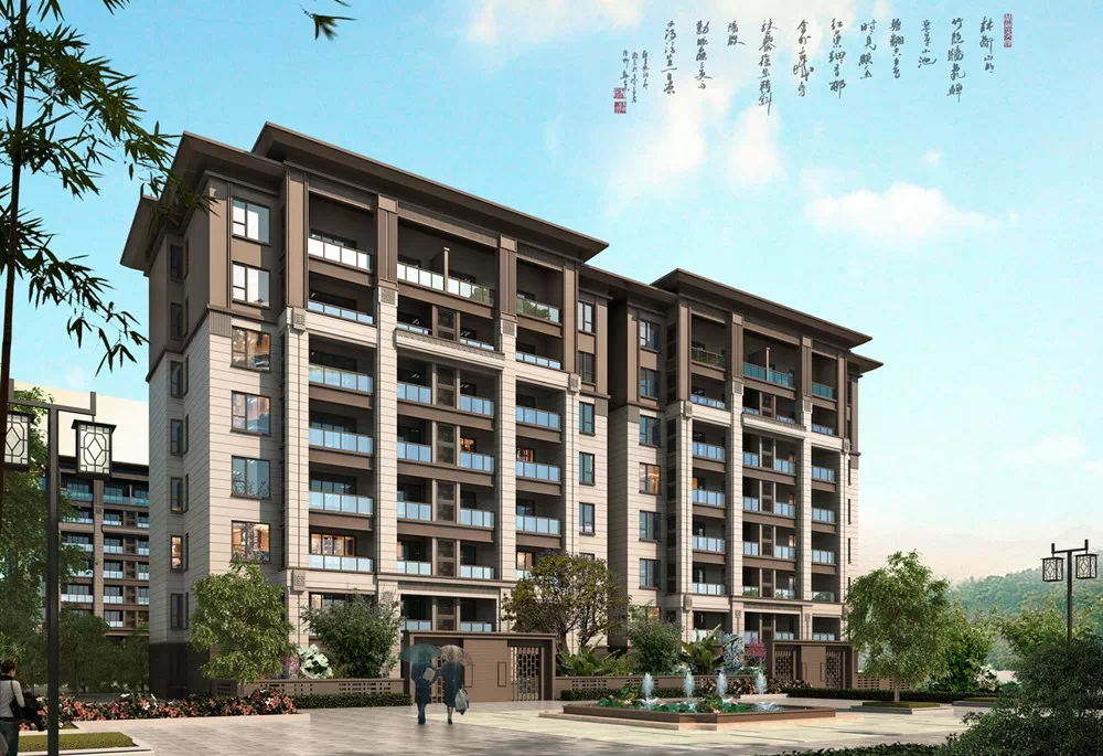 承袭东方人居住文化,重塑东方家国礼制,研造107-145㎡国宅府邸,建筑呈左右对称,贵胄高层与国宾洋房,北高南低结合现代生活习惯与审美,巧置露台、多阳台、庭院洋房等宽庭空间,格局大气;户户推窗见景,丰富居住空间层次,营造宽敞舒适的生活空间,承载项目对新中式人居理念的全新解读。