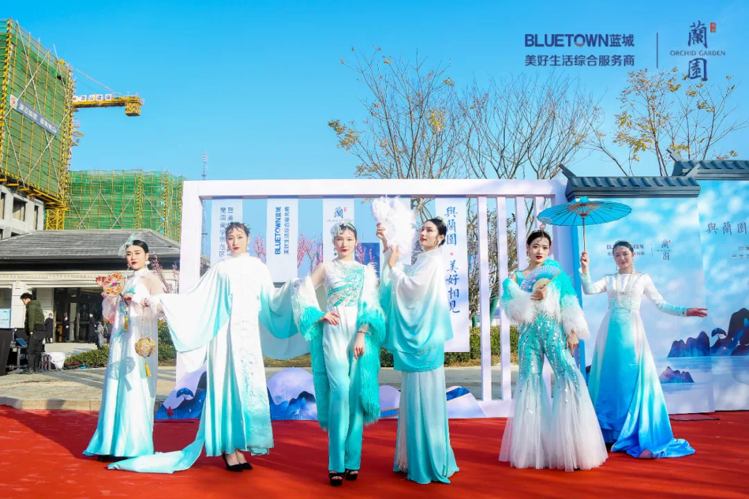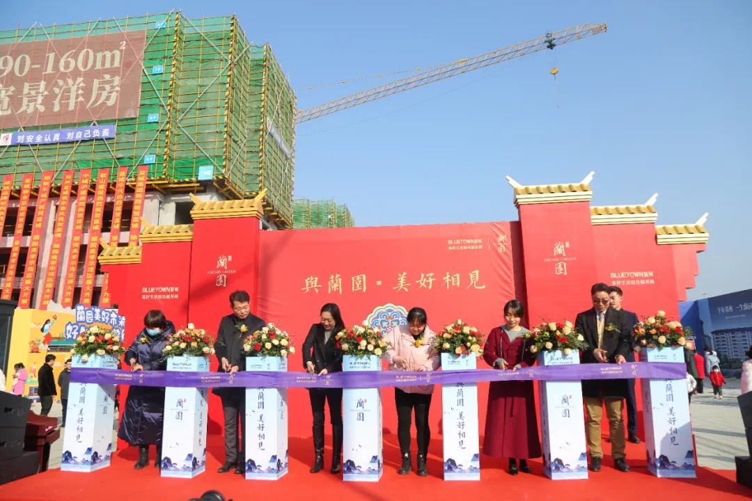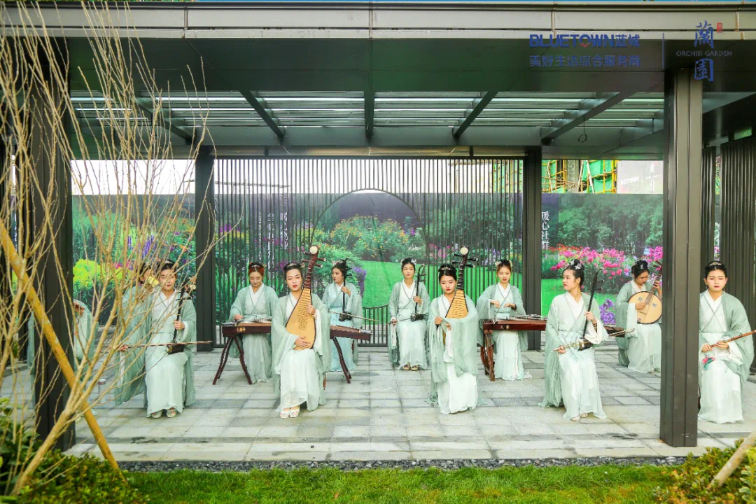 随后,诸位领导和蘭园家人代表上台一同为蓝城·蘭园示范区开放剪彩,蘭园示范区在万千期待中正式开放。来宾们纷纷步入示范区内,只为亲眼见证蘭园的种种美好。漫步于示范区园景之内,中轴园林苍翠雅致,映入眼帘的迎宾水景充满了灵动之韵,移步异景间,生活的悠然尽显,伴随着十二乐坊古典乐器演奏出的曼妙琴音,中式茶艺的古朴雅韵,一场充满诗情画意的生活画卷于眼前缓缓铺展开来。