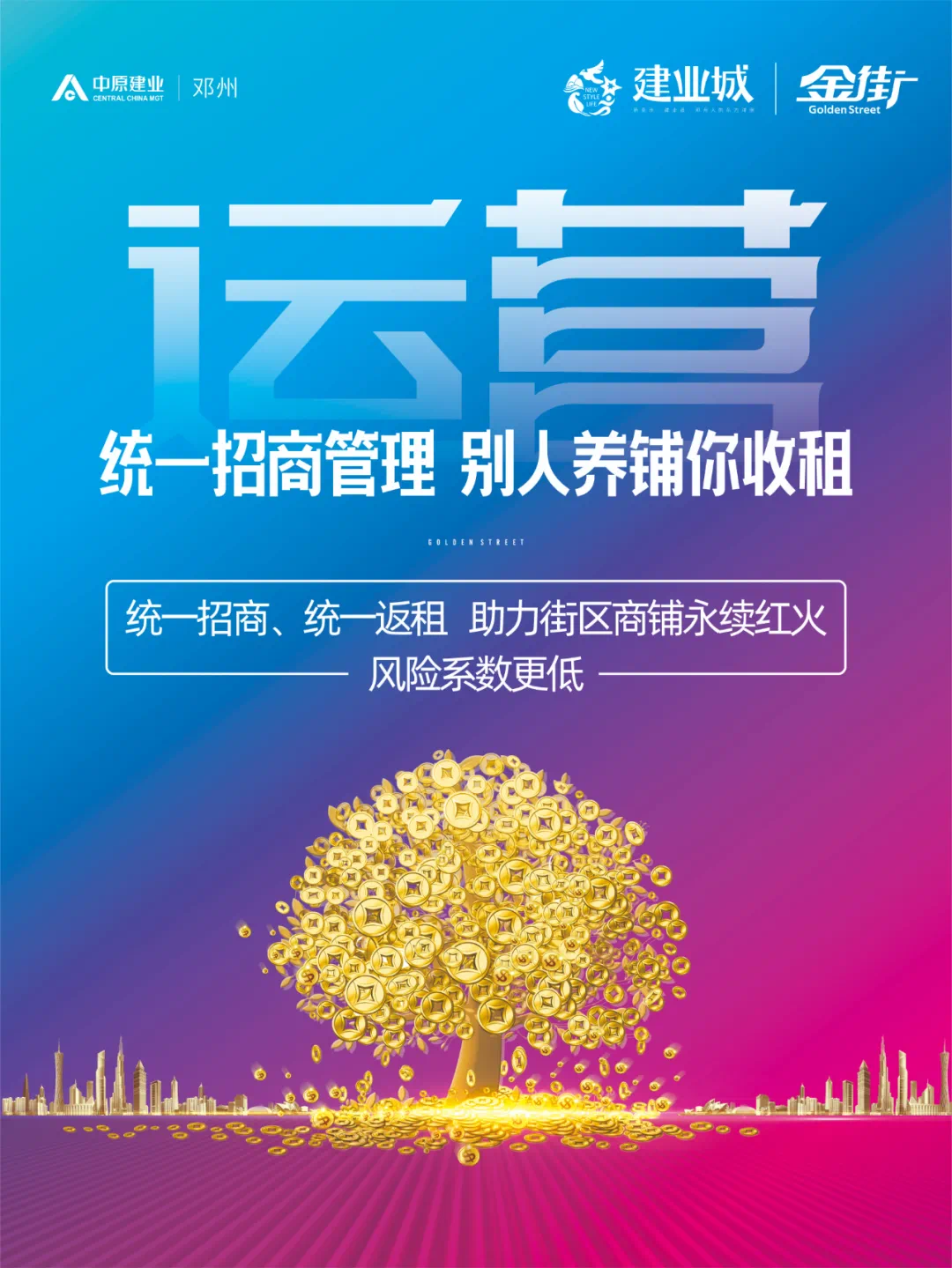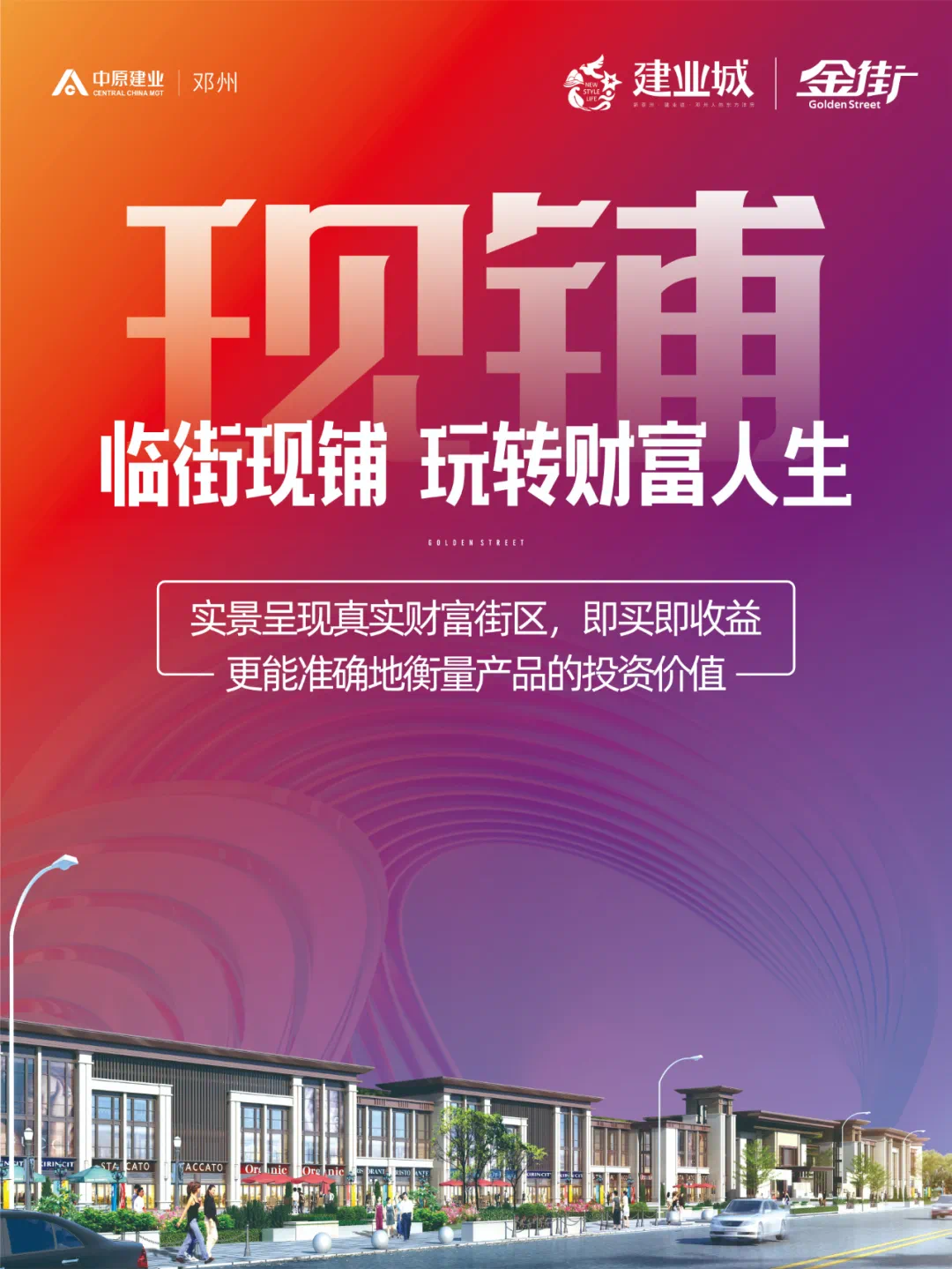 邓州建业城金街,统一招商、统一管理,媲美大商场的运营模式,助力街区商铺永续红火,风险系数更低。万人大社区,一条黄金街区,醇熟旺铺,月月收租,投资无忧,躺着也能做房东!