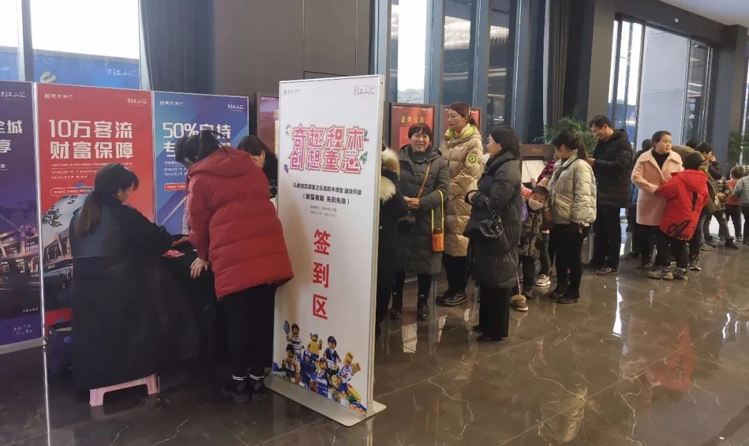 客户家人带着可爱的宝贝在现场搭建积木
