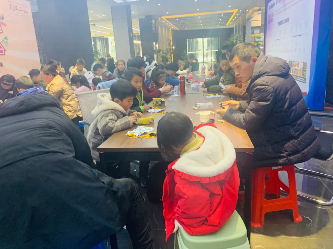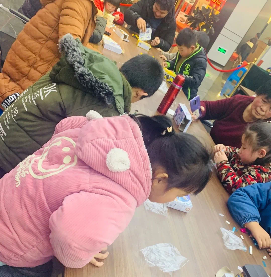 客户家人带着可爱的宝贝在现场搭建积木