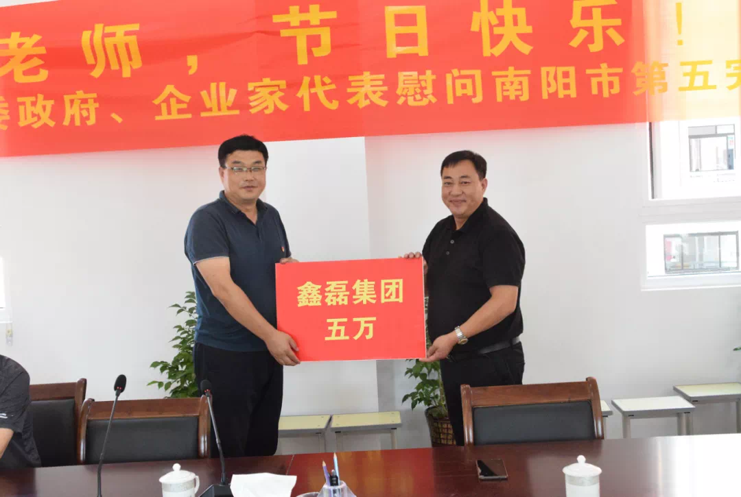 9月8日上午,第三十六个教师节到来之际,七里园乡党委政府、企业家代表慰问第五完全学校。鑫磊集团总经理周杨作为区域责任企业家出席本次活动,并捐赠五万元表达对第五完全学校的支持与期待。此次捐赠,是鑫磊集团继疫情向一线医护工作者捐赠物资之后,在社会公益事业上的又一举措。鑫磊集团从创立至今,在实现自身快速发展的同时,积极投身各类社会公益慈善事业,践行社会责任,积极奉献社会。